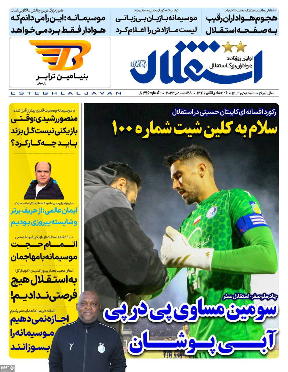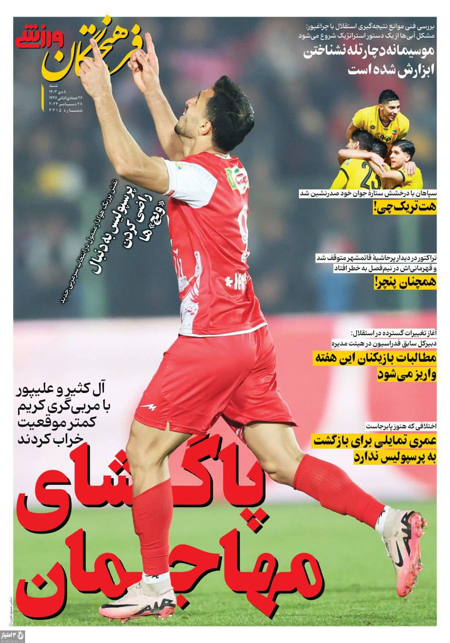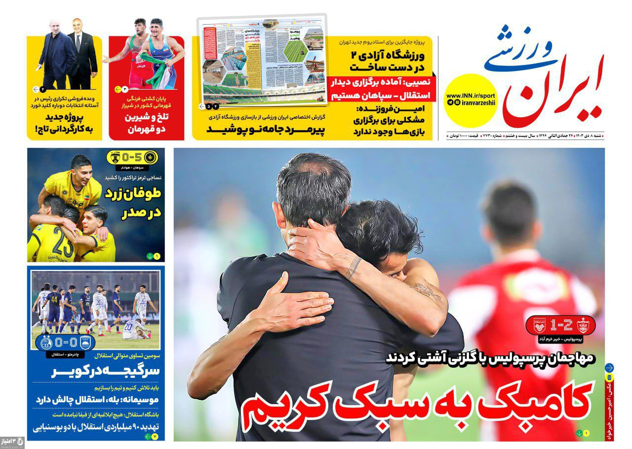 صفحه نخست روزنامههای ورزشی ۸ دی ۱۴۰۳