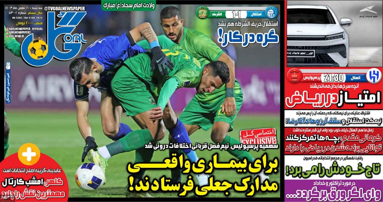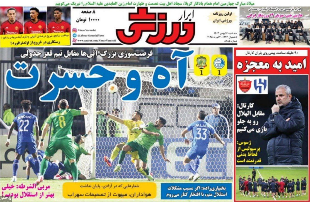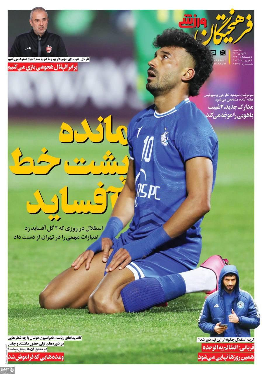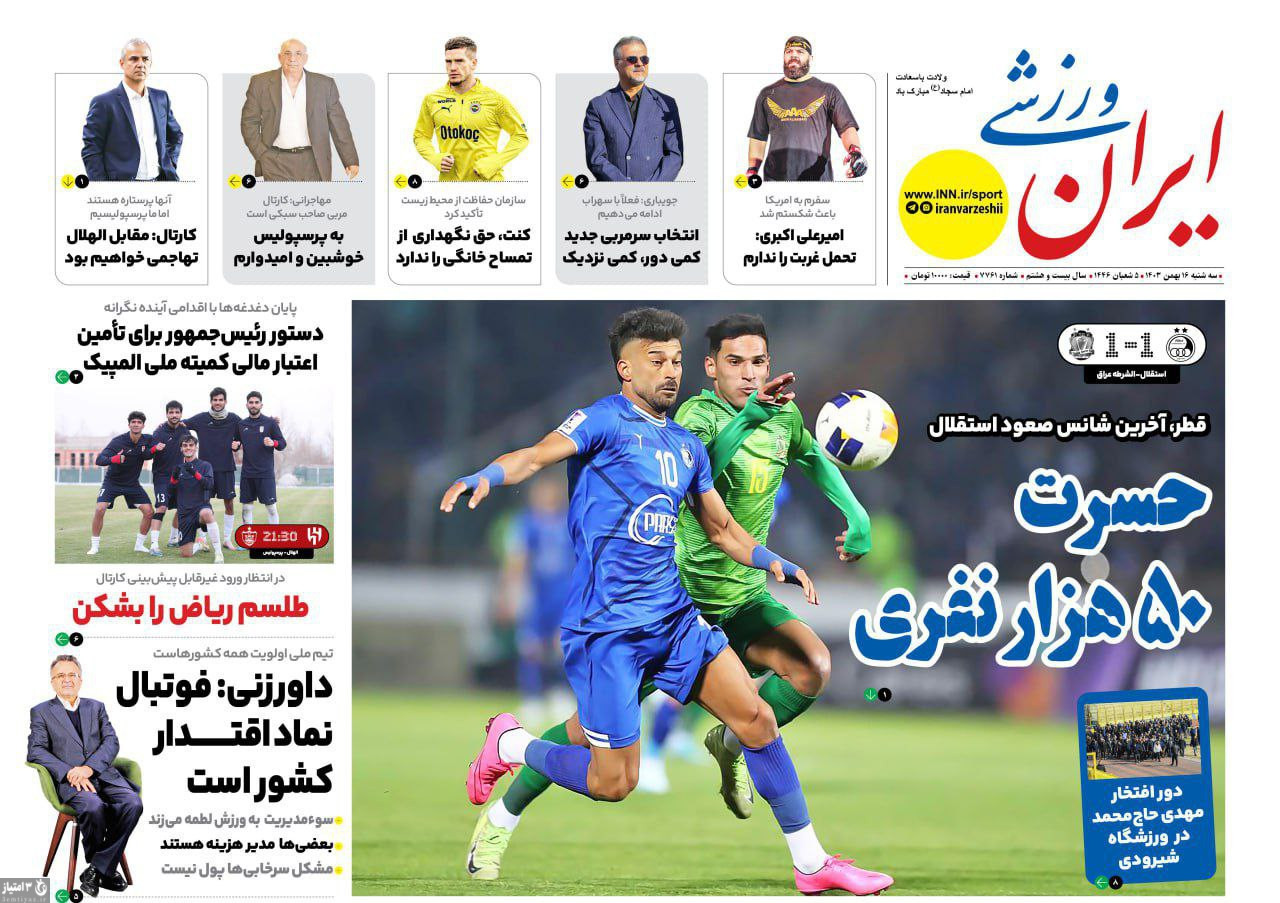 صفحه نخست روزنامههای ورزشی ۱۶ بهمن ۱۴۰۳
