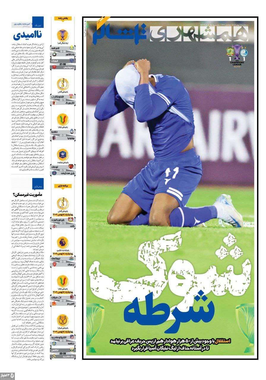 روزنامههای ورزشی 16 بهمن 1403 منتشر شد.
