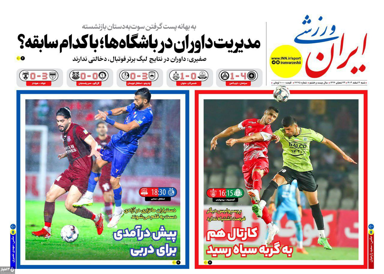 صفحه نخست روزنامههای ورزشی ۴ اسفند ۱۴۰۳