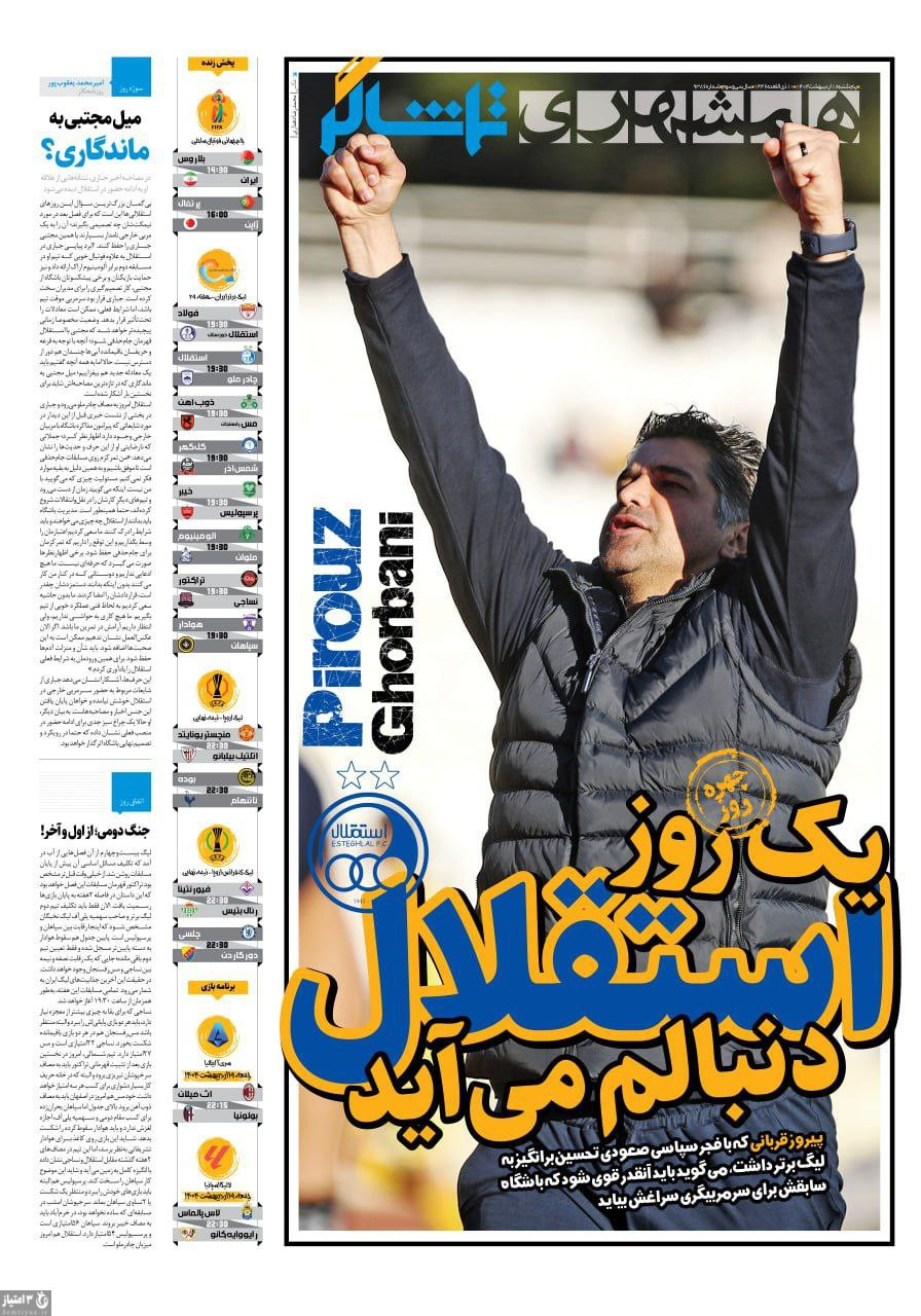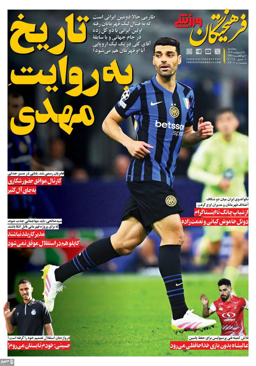 صفحه نخست روزنامههای ورزشی ۱۸ اردیبهشت ۱۴۰۴